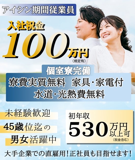 祝金100万円で寮費無料のアイシンがおすすめ。