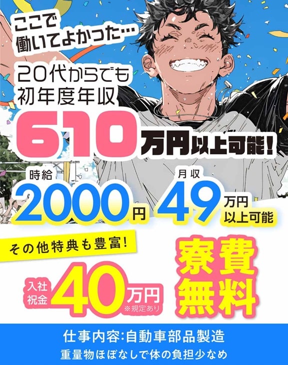 【アイシン派遣】時給2000円×寮費無料×入社祝金40万円の求人を解説