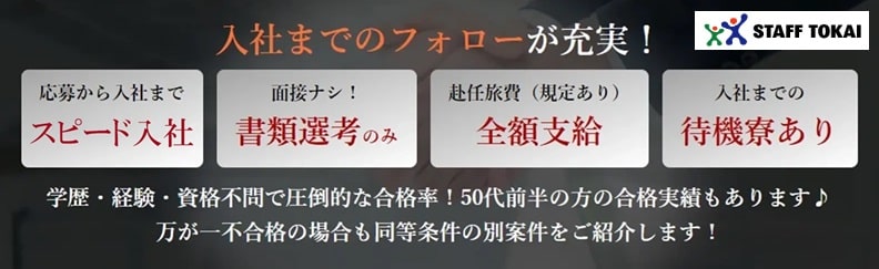 | 入社日 | 応募締切 | 合否連絡 | 入寮日 |