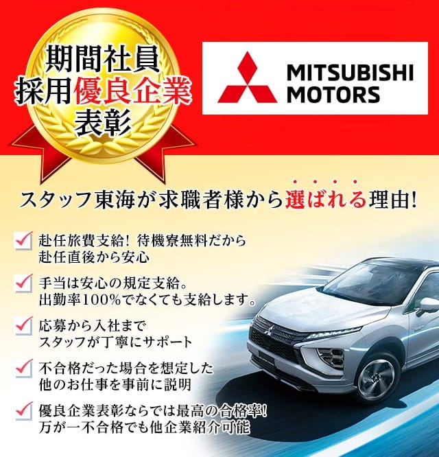 三菱自動車の期間工/人気車種、アウトランダーPHEVなどの組立や溶接、プレス、塗装等、いずれかの業務をお願いします。