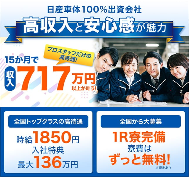 日産車体九州で稼ぐなら派遣会社はプロスタッフ