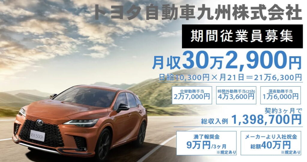 トヨタ自動車九州の期間工は給料がやばい