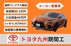 トヨタ自動車九州では高級車の代名詞「レクサス」を製造するので相当やりがいあるし、年収例500万円でお給料もばっちり。美人が多くて食事がおいしい福岡県で暮らせるのは魅力的ですね!